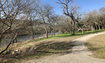 This private home is on 5 acres overlooking the Guadalupe River and is a short drive from Gruene, New Braunfels, Canyon Lake, and San Marcos.