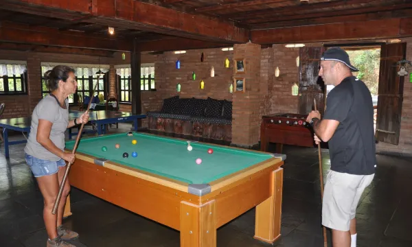 A recepção do hotel é show, fomos muito bem atendidos pelos funcionários e pela dona. O custo benefício ótimo, com piscina, sauna, sinuca, sala de televisão, ping pong, toto e uma localização excelente sem precisar de carro. Os chalés são bem separados, permitindo uma privacidade muito boa, tem rede, lareira, e com uma paz maravilhosa.