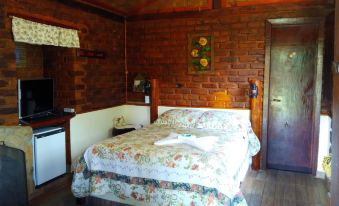 Localização muito boa. Próxima ao centrinho. Chalés bem rústicos com nível médio de conforto. Não tem ar-condicionado. Somente ventilador de teto. Cama de casal padrão com bom colchão, Wi fi não tem nos quartos. Só na sede principal. Acessibilidade ruim para chegar aos chalés, por meio de trilhas curtas porém em subidas. Não indicado para pessoas com dificuldade de locomoção. A piscina não dá para usar. Água turva.