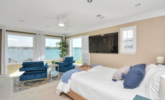 ♛ Master Bedroom: Queen-Size Bed, Sitting Area, Workspace (Desk + Chair), Access to the Balcony