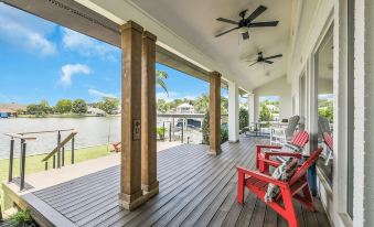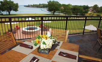 The patio has a cozy two-person swing at the boathouse and a picnic table so no matter what mood you're in, you can sit outside and breathe in the water view. An outdoor kitchen with gas grill and granite counter top allow families to enjoy the lake while cooking. We provide all BBQ utensils that you could need. Two adirondack chairs and small patio table are strategically placed on outdoor patio to catch the spectacular Lake Conroe sunsets. We also have counter height outdoor seating with 4 chairs and a table to enjoy the lake views. We also provide a picnic table with 2 benches for additional seating options. Two outdoor lounge chairs with sunbrella also provided. We also have 4 Adirondack chairs that surround a fire pit perfect for S'mores on the lake--make sure to bring wood if you're planning to use the fire pit!