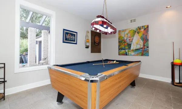 Downstairs we have a Billiard Room with 7 foot pool table, dart board and all sorts of sporting equipment like tennis racquets and balls, badminton rackets, soccer ball, floats for the lake, tube & rope and basic "play" fishing gear--if you are a serious fisherman, bring your own gear. We also include a Bose docking station with the ability to hook up both older version of iPods and newer phones as well.