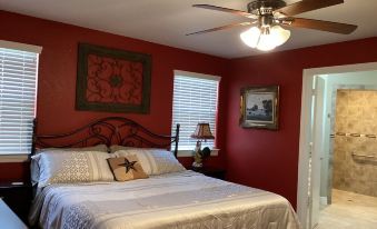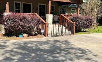 The Manor home is also ADA accessible with ramp access on right side of home up onto the screened in back porch. The 2nd Master BR off the living room area in The Manor is ADA accessible sleeping quarters with a king bed and walk-in shower.