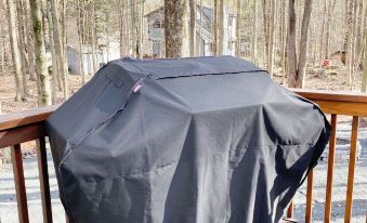 The outside features a private gated deck overlooking the wooded back yard, a BBQ grill and outdoor seating. The back deck is gated to ensure safety from stairs for the little ones and small pets.