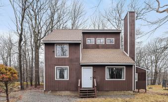 This beautiful home has been carefully designed to provide you with everything you may need to enjoy a trip to the Poconos! Enter into a spacious living room with cathedral ceilings where you can lounge out on the comfy sectional couch and watch all of your favorite shows or read a nice book you can find by the fireplace.