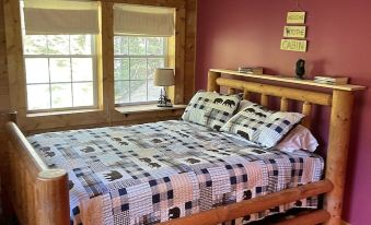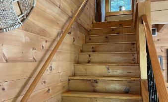 What a gorgeous spot, land that is park like bordered by over 1200 ft of stream frontage. They just stocked the stream with 1000 brook trouts, so you can fish right here. There is also a cute beach on the property. Log home is filled with warmth. Open main floor living. Kitchen has an island plus breakfast bar.***** COMPLIMENTARY BEDROOM SUITE WILL ONLY BE UNLOCKED AND ONLY PROVIDED FOR RESERVATIONS OF 5- 8 GUESTS. THIS BEDROOM SUITE IS LOCATED DOWNSTAIRS ON THE MAIN FLOOR. ***** Nice staircase to 2nd floor with 3 good size bedrooms & another 3/4 bath. Another stairway to 3rd floor leads to 2 large rooms we are working on. You can see the stream from every window in this home. Sims Stream Road is an ATV and snowmobile trail as well. We also have outside cameras for your security.About pets:Pets allowed.About checkOut:Check out before 10:00 AM.About children:Children allowed: ages 0-17.With the wood stove, no children under 5.About checkIn:Check in after 3:00 PM.About smoking:Smoking is not permitted.Lots of outdoor spaces.About minBookingAge:Minimum age to rent: 18.About events:Events allowed.