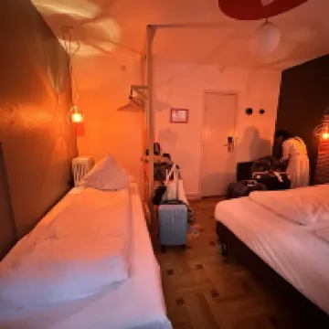 Лучшего места для проживания в Копенгагене и представить себе невозможно. Расположение рядом с главным железнодорожным вокзалом сделало исследование города невероятно простым и удобным. Номер был идеального размера для пары, а наличие раковины в номере стало продуманным решением, благодаря которому собираться утром и вечером было гораздо проще. Общие ванные комнаты также приятно удивили — у каждого туалета и душа была своя отдельная кабинка, что было гораздо удобнее и продуманнее, чем в типичных хостелах. В номере не было кондиционера, но вентилятора было более чем достаточно, хотя мне обычно жарко. Мы заметили, что в номере может быть немного душно с закрытыми окнами, поэтому старались держать их открытыми как можно чаще. Минусом было то, что ночной шум от людей и машин иногда мешал нам спать. Ещё одним недостатком было наличие камеры хранения багажа. Она не входит в стоимость проживания и оплачивается дополнительно в размере 40 датских крон за сумку в сутки плюс 5 датских крон за обслуживание. Небольшая деталь, но о ней стоит знать заранее.
