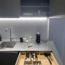 В отеле есть небольшая кухня, где можно приготовить завтрак и ужин... Недалеко от станции метро, всего в нескольких минутах есть 2 супермаркета. Это определенно хороший помощник, если вы хотите сэкономить на дорожных расходах. ..