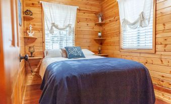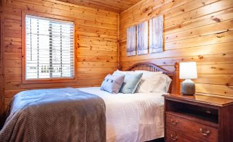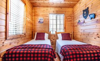 Cabin includes three bedrooms, 2 with queen beds, and one with 2 twin beds. The living area has a full size futon with extra linens. Fully equipped kitchen with coffee maker.