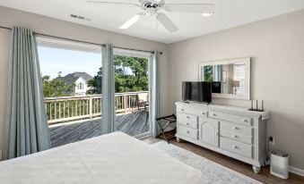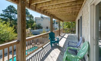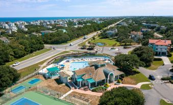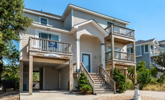 Welcome to Lighthouse Point, your haven for rest and relaxation and the beacon that will guide you to the perfect Corolla Vacation. This spacious six bedroom home is ideal for larger groups or multiple families vacationing together, with three master suites and a den on the ground level that serves as an additional hangout space. The main living area on the top level features an open-concept layout with new LVT flooring throughout and vaulted ceilings, perfect for entertaining and spending quality time with family and friends. Two levels of decks on the back of the house overlooking the private pool plus balconies on the east side provide plenty of outdoor living space. Access from the pool to the den with mini-fridge and microwave, along with exterior bathroom access, makes it easy to spend the entire day by the pool. When you're ready for a beach day, the nearby Marlin Public Beach Access is a short walk away.