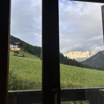 코르바라는 돌로미티의 중심부인데, 미리 예약했었지만 이 가격에 이런 숙소에서 머무를수 있다니. 소파셋트와 의자 네 개가 있는 테이블 셋트, 침대방은 따로! 다음에는 한달 예약하고 오고 싶다.