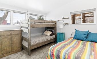 Living Space: The wood burning stove in the living room provides comfort and warmth during the winter months and brings some rustic ski lodge charm into this home. A pullout couch is perfect for extra guests and provides a great open space to play games and watch TV (75-inch flat screen smart TV with streaming services).