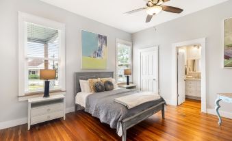 One Epic Stay (formerly known as the Sunflower) is a spacious, historic home only 1/2 mile from Covington Square. With 4 bedrooms offering full ensuite bathrooms, a mix of queen, twin, full, and king beds, this peaceful retreat is perfect for families or groups of friends. Enjoy the convenience of private bathrooms for getting ready for a trip to the square.