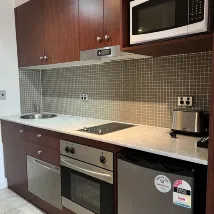Квартира полностью оборудована стиральной и посудомоечной машинами, сушилкой для белья, духовкой, микроволновой печью и индукционной плитой. Также предоставляются все необходимые кухонные принадлежности, столовые приборы и кухонные принадлежности. Внизу есть супермаркет с продуктами. Персонал на стойке регистрации был очень вежливым. Несмотря на то, что квартира расположена довольно далеко, внизу есть автобусная остановка, откуда можно доехать до Чатсвуда и Мэнли-Бич.
