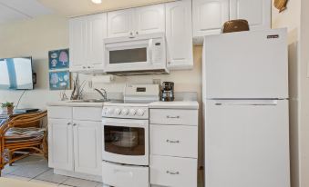 This 2nd floor balcony suite has an incredible view of the ocean with a palm tree gently swaying just off the balcony. This condo is furnished with upscale rattan furniture in a tropical motif and equipped with a 42" flat screen TV. The bedroom has a king size bed and a 25" flat screen TV. There is a memory foam mattress on the queen sleeper sofa for added comfort. Ceiling fans in both the living room and bedroom areas, full kitchen with 4 burner stove and oven, tile floor is the perfect condo for a beach holiday. NO PETS ARE ALLOWED. Minimum age to rent is 21 years old