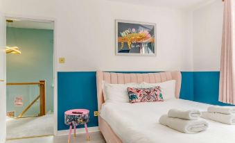 The two larger bedrooms have smart tv’s. And all have bedside tables. There is a shelf and rail with hangers for your clothing but no drawers so please be mindful of this. We have tried to keep the space as open as possible.