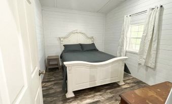 Our cabin features three spacious bedrooms, including three queen beds accommodating up to six guests comfortably. The full bathroom boasts a luxurious walk-in shower for your convenience.