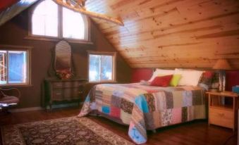 The peacefulness of the outdoors and the large windows to view makes the cabin inviting. The cabin was a former old granary renovated to become a charming, cozy cabin. Not uncommon to step out onto one of two decks (upper and lower), to see up close or to touch one of the friendly visitors that are known as our beloved pets which happens to be horses!