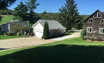Stunning 92 acre property. Fishing, swimming, hiking, biking, birding, campfires all in an atmosphere of the great outdoors. Spacious bedroom overlooks acres of wooded scenery and landscapes of the rolling hills of Western Wisconsin. Owners home is located approx. 200 ft from cabin. A 2.5 car garage separates buildings.