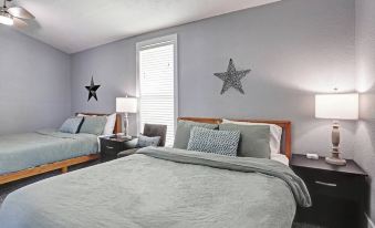 The second and third bedrooms each feature two queen memory foam beds, providing plenty of space for friends, family, or travel companions. With a cozy yet airy feel, these rooms blend modern comfort with rustic charm. Thoughtfully chosen artwork and textures bring a touch of the outdoors inside, ensuring a restful night’s sleep in a tranquil setting.