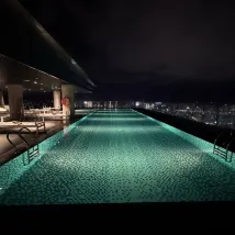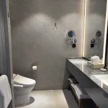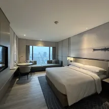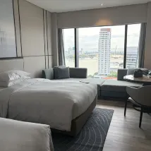 Отель довольно новый, но персонал на стойке депозита был немного невнимателен: они не разменяли достаточно денег, но позже сказали, что депозит не нужен. Атмосфера в отеле очень приятная, а ночной вид с неба особенно прекрасен. Рекомендую остановиться в номере Executive River View с видом на реку Хан. Рядом много удобных мест, где можно поесть и выпить. Бассейн отеля тоже хороший, он расположен на 45 этаже. В целом, бренды Marriott неплохие; рекомендую!