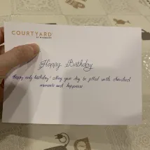 Я осталась очень довольна пребыванием в отеле и обязательно вернусь в следующий раз. Самым большим сюрпризом стал день рождения моего мужа, но он случился уже после нашего отъезда. Персонал отеля заботливо принёс нам торт, а сотрудник по имени Ксен Хо написал от руки поздравительную открытку, которая глубоко тронула нас и оставила неизгладимое впечатление. Спасибо всем сотрудникам отеля за то, что сделали эти несколько дней такими приятными!