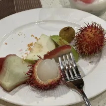 Обслуживание было превосходным, а удобства — выше среднего. Персонал на стойке регистрации был очень вежлив и повысил нам категорию номера. Поскольку номер ещё не был готов, нам даже предложили фруктовую тарелку и открытку с заботливой рукописной надписью.