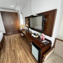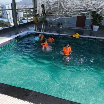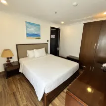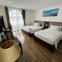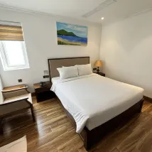 Это бюджетный отель, довольно старый и обветшалый. Забронировали 3 кровати размера «king-size», но нам сообщили, что кондиционер в номере не работает, поэтому нам предоставили номер с видом на город и 2 кроватями размера «king-size». Номер просторный, чистый и с основными удобствами, такими как зубные щетки, тапочки и бесплатная вода. Номер не звукоизолирован! Мы едва могли спать из-за сильного шума транспорта, который слышен до 4 утра! Не говоря уже о том, что он находится рядом с местной закусочной, которая может быть довольно многолюдной из-за местных жителей, и там будут проходить сеансы караоке каждый вечер. Выбор блюд на завтрак был ограничен, и не было большого выбора для веганов и мусульманских путешественников. Бассейн был настолько запущенным, с мутной водой и брошенными сломанными шезлонгами вокруг бассейна на крыше. Отель расположен далеко от пляжа, и поблизости не так много закусочных. Есть мини-маркет, где можно купить ежедневные продукты, такие как вода и закуски. Он находится довольно близко к торговому центру Vincom и ночному рынку Son Tra. Ожидал большего от этого отеля после прочтения отзывов. Не рекомендуется для привередливых!