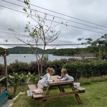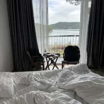 Место приятное. Вид на озеро прекрасный. Люди вежливые и отзывчивые. Нам было прохладно, принесли второе одеяло. Как правило, два завтрака на выбор. Хороший кофе под прессом. Ехать до города на такси около 20 минут. Машина приезжает быстро. Стоимость 120к примерно.