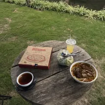 Сюда приезжают доставки с едой или продуктами, поэтому можно себя обеспечить обед и ужином в таком виде. Рядом заведений почти нет, либо с сомнительным набором блюд за неоправданно дорого.