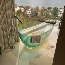 Ванная комната и туалет прозрачные, и это немного неудобно, потому что мы привели мою маму и моего мужа. Моему мужу пришлось принимать ванну на балконе.