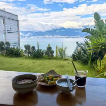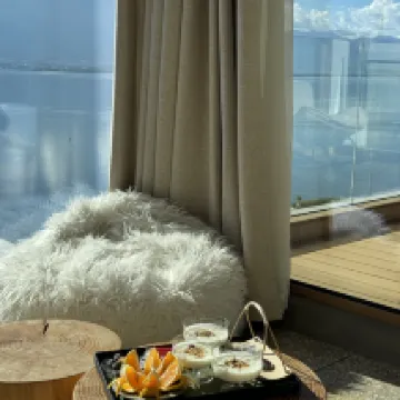 First of all, the view is fantastic, really not clickbait! The service is great and genuine! The staff are friendly and helpful. We spent our nights there at the bar/cafe area hanging out with them as well as the majestic yet adorable cat. The location is little away from the more famous tourist spots, but the experience was worth it and you can travel anywhere easier by cab. Would recommend this to a friend!