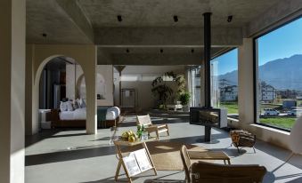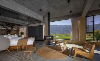 民宿的設計以極簡侘寂風為主,一張1.8米大床彷彿漂浮在房間中央,從床邊到每一個角落,都有足夠空曠的空間,這種空間上的“浪費感”帶來了極致的奢華:你可以隨意的伸展、打滾,任何動作行為不會因為空間的逼近而被打斷。