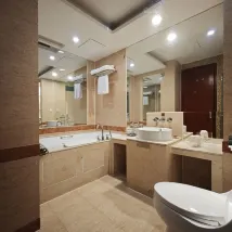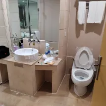 Обстановка в отеле очень посредственная и слишком старая. Несмотря на то, что это пятизвездочный отель, удобства и услуги в нем неудовлетворительны. Номер довольно большой, с тремя кроватями, постельное белье относительно чистое, но остальные удобства и предметы слишком простые и старые. Девушки на стойке регистрации очень симпатичные, но обслуживание среднее. Лифт в отеле — это особенность, которую я никогда не видел в других отелях.