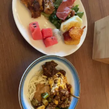 4. Еда: Рис сашими A Shui's находится всего в нескольких минутах ходьбы от отеля. Рядом также есть небольшой местный супермаркет. Вишня очень дешевая. Особенно рекомендую рамен Qinxinyuan, лапшу с маслом Conch и зелёным луком и вонтон с женьшенем. Всё это я ем впервые. Ингредиенты свежие и незабываемые.