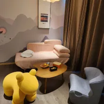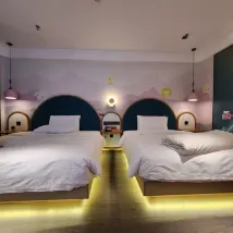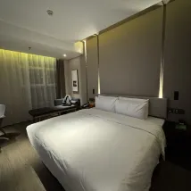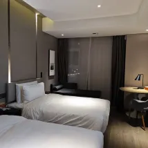Номер был просторным, и семья из трёх человек могла с комфортом разместиться на двухметровой кровати. Подушки были удобными. Также было удобно заказывать еду на вынос вечером. Отель расположен недалеко от станции высокоскоростной железной дороги, так что можно было не бояться опоздать на поезд. Раковина была спроектирована неудачно, и вода часто протекала на пол. Обслуживание было превосходным. Мой ребёнок забыл телефон и часы в номере, и на стойке регистрации нам быстро нашли службу доставки SF Express. Спасибо!