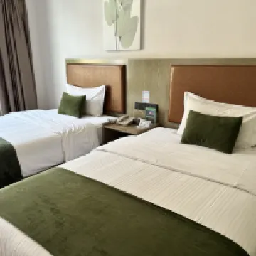 Отель расположен прямо на главной улице, в него очень легко войти и выйти. Он имеет собственную выделенную парковку и лифт, который идет прямо на каждый этаж, что делает его удобным для путешественников, путешествующих самостоятельно! Комната большая и чистая, ванная комната разделена на влажную и сухую зоны. Изначально я забронировал номер на три дня, но когда я поехал в Аден играть, у меня поднялась высокая температура. Когда я вернулся, я обсудил с отелем отмену номера на один день. Отель сразу согласился. чтобы выразить свою благодарность!
