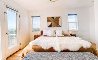 Main level Bedroom 1 has a king bed and private bathroom with large custom shower (2 showerheads), and private balcony.