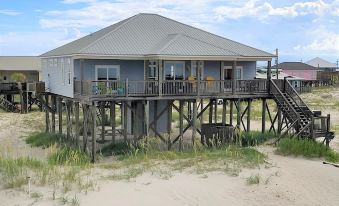 HOUSE FEATURES: Beautiful 4 bedroom, 4 bathroom home (sleeps 13 or 15 if pack n plays are used) just 200 feet from the Gulf of Mexico. With crown molding and raised ceilings throughout the house, there are 2 master suites facing the Gulf with private bathrooms, king-sized beds(new mattresses 2024) and deck front sliding glass doors. The 3rd bedroom has a queen bed and bunk set with a bathroom that can be accessed from the bedroom or the hallway. The 4th bedroom includes 2 bunk sets, one having an extra trundle underneath. This room also has its own private bath. All bedrooms have blackout curtains. Highspeed wireless internet and Dish Network is furnished in the living room and each bedroom. Master on west side also has Xfinity Livestream. The dining table seats 8 and there are 4 bar stools to accommodate everyone. The family room and expansive partially-covered deck overlook the Gulf. The spacious kitchen comes well equipped with everything you need - dishes, utensils, lots of Rubbermaid food storage containers, baking dishes, mixer, mixing bowls, measuring cups/spoons, cheese slicer, ice cream scoop, wooden kabob skewers, colanders, rolling pin, cookie sheets, pizza pan, pizza cutter, crockpot, roaster pan, blender, Belgian waffle maker, individual smoothie maker, electric juicer, seafood crackers, wine corkscrews, potato masher, steamer, 4-slice toaster, large electric griddle and both single serve keurig and regular coffee pot (no need to bring filters). Granite countertops along with stainless appliances which include refrigerator, dishwasher, oven/stove and microwave will make preparing meals enjoyable. Just off the kitchen you'll find a full-size washer/dryer and walk-in pantry. Kitchen garbage can uses 13 or 16 gallon bags; we will have a bag placed inside on arrival, but you will need to bring your own for the remainder of your stay. There is a charcoal grill and a charcoal chimney starter under the house (bring your own charcoal). BBQ utensils in kitchen. If cooking isn't your "thing" there are many wonderful locally owned restaurants and grocery services on the island.