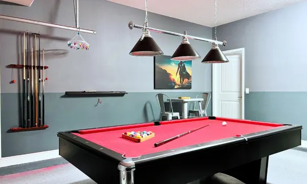 Gameroom with Pool Table, Foosball, and Air Hockey