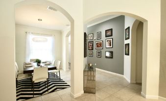 This spacious, professionally decorated, quality furnished 3300 square foot, single story, 5 bedroom, 4 full bathroom, pool home is the perfect place to relax between your various vacation outings. Entering your modern vacation home you immediately feel the 12 foot high ceilings, 8 foot tall doors, all tile floors, and the open, light, floor plan design with views the Great room, Dining room, kitchen area, your private pool with a peaceful conservation/nature area view.
