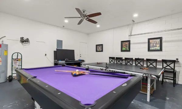 Other than that, the house was fairly clean. The beds were comfortable. Although, the pillows should be replaced in a couple of the rooms. They were pretty flat. We could have used a few more bath towels. We had to constantly wash the few we had since it was 10 of us. The kitchen was well equipped with lots of plates, cups, bowls, pots, pans, silverware and cooking utensils. The pool was wonderful. The water was warm from the sun so no need for heating. A small garden snake got into the pool the 2nd day, after the grass was cut out back. We were able to get it out with the netting. We enjoyed playing pool and ping pong at night. It was a great addition to the house. If you are planning a trip to Orlando or any of the parks, beware of traffic. It can be terrible leaving from where the home is located. Overall, everyone enjoyed their stay and the experience.