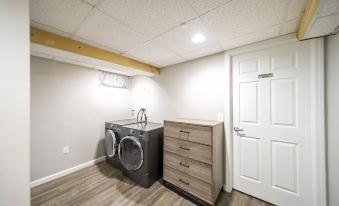 Studio basement apartment with private, keyless entrance + modern finishes. Centrally located in Davenport, close to major highways. The space includes a queen bed with memory foam mattress, a sofa (with a pullout double mattress for additional guests), closet space, a washer/dryer for your personal use, a spacious bathroom with shower and storage, and a kitchenette area with a full fridge/freezer, microwave, and an island with butcher block countertop. Security camera on the premises.About pets:Pets allowed: less than 50 lbs per pet (limit one pet total).All breeds aren’t except. NO pets on the furniture.About checkOut:Check out before 11:00 AM.About children:Children allowed: ages 3-17.About checkIn:Check in after 4:00 PM.About smoking:Smoking is not permitted.About minBookingAge:Minimum age to rent: 21.About events:No events allowed.