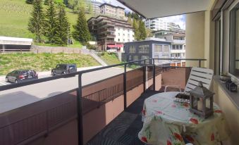 Davos-Platz: Comfortable apartment block "Allod-Park", 1'560 m a.s.l.. In the centre 700 m from the centre of Davos Platz, in a central, quiet position. For shared use: park. In the house: reception, restaurant, bar, WiFi, lift, storage room for skis, central heating system, washing machine (extra), tumble dryer (for shared use, extra), drying room, ski boot dryer. Linen change (suppl. charge extra). Towel change (suppl. charge extra). Room cleaning on request (extra). Motor access to the house. Parking (extra), communal covered parking (extra). Dimension: height 200 cm. Supermarket 800 m, shopping centre 400 m, restaurant 10 m, bakery 300 m, bus stop "Kongresszentrum" 100 m, railway station "Davos-Platz" 1.2 km, park "Kurpark" 50 m, outdoor swimming pool, indoor swimming pool 200 m, public bathing area 3.1 km, bathing lake 2.7 km, lake Davoser See 2.7 km. Golf course (18 hole) 2 km, surf school 3.1 km, sailing school 3.1 km, tennis 4 km, indoor tennis centre 4 km, minigolf 400 m, riding stable 5 km, sports centre 200 m, walking paths from the house, cycle lane 400 m, cable car 1.5 km, mountain railway 600 m, chair lift 1.8 km, gondola lift 1.7 km, slopes 1.7 km, ski rental 1.7 km, ski bus stop 50 m, ski school 1.5 km, children's ski school 1.5 km, cross country ski track 1 km, ice rink 200 m, children's playground 50 m. Nearby attractions: Kirchner Museum 50 m. Well-known ski regions can easily be reached: Parsenn 1.5 km, Jakobshorn 1.2 km, Rinerhorn 8 km. Well-known lakes can easily be reached: Davosersee 2.7 km. Please note: Loading and unloading of baggage is possible at the holiday house. The holiday properties may differ in situation, size and location. The holiday properties may differ in living space, floorplan, equipment and furnishing. Toboggan run Schatzalp-Davos. Garage spaces on request: CHF 10.00 per day. WiFi at or near the reception. Special features: weekly raclette and fondue evening. Meals can be ordered in the restaurant. Reservation of tickets for events. "Allod Park Haus C 207", 3-room...