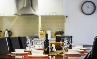 A modern, fully equipped kitchen (stove, oven, microwave, dishwasher, large French door fridge, Nespresso Pod machine, 4 slice toaster, sandwich press, slow cooker,..., not to mention a full array of cooking utensils and crockery) flows through to open plan dining/living area where you can sit comfortably at 8 seater table or chill out on the couch and watch TV.