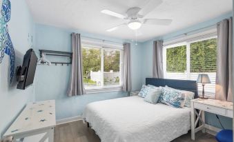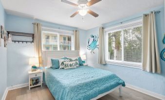 This newly renovated three bedroom two bath house sleeps eight comfortably. It offers two queen bedrooms, a queen sofa sleeper in living room, and 3 XL twin beds in jellyfish bedroom. There are smart TV's in each bedroom and in the living room. There are no closets but wall hangers with hangers for clothes. Centrally located, only a two minute walk to the beach less than 15 min walk to Daytona Beach Walk. Less then 5 miles from the Daytona International Speedway and about an hour from Orlando and St. Augustine. You are located next to 7-11 for quick food, supplies and treats. Restaurants and bars within walking distance. There are pedestrians walking by this busy area and the neighborhood has a mix of all cultures and ethnicities like most of the Daytona Beach Area.