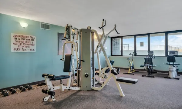While the unit is beautiful and the view is unbeatable. The building is old. Built in the 1970's. The fitness equipment in the fitness room works but it is old. The pool is open and the beach access ramp is open. If you need the latest and greatest building and amenities this is likely not the unit for you.