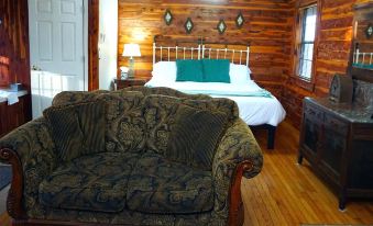 We have three cabins on the property for couples or group use. Two of the cabins have a studio king-sized bed layout with an adjacent Jacuzzi tub that is perfect for couples. The third cabin has a king sized loft bed with Jacuzzi tub and ground level 2 twin beds, perfect for 2 couples or a family of four.