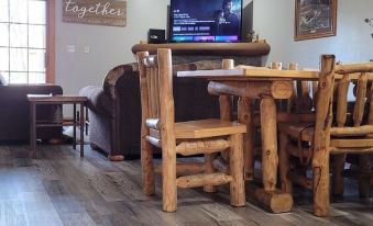 (Please Note:WE ARE PRIVITELY OWNED, INDEPENDET FROM GRAND BEAR RESORT AND OR GRIZZLY JACK'S RESORT. Water Park Passes are NOT INCLUDED).Rustic log style furnishings. The generous 1,800 square foot Villa sleeps 8 with 2 bedrooms, 2 bath, comforting fireplaces, televisions, a patio, 2 balconies, washer/dryer, kitchen & dining area.