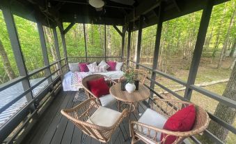 Get ready to relax in this newly purchased and renovated 3-bedroom house in the Artisan Historical town of Mentone on Lookout Mountain. The house is nestled on wooded acreage on Brush Creek, upstream from the Middle Fork of Little River. Enjoy the three porches, fire pit, outdoor bedswing, and the hot tub while relaxing in the quiet surroundings. The large windowed vaulted ceiling sunroom is the perfect place to observe the woodland creatures while drinking your morning coffee. This home has been newly renovated with upscale comfort and luxury in mind. The kitchen is fully stocked and has a coffee and hot tea bar with an expresso maker and French Press. An extra large custom dinning table is the perfect place to eat and gather to play games (numerous games and puzzles available). There are four smart Roku televisions and free wifi for your convenience. Each bathroom comes with wall dispensed shampoo, conditioner, and body wash. The stone gas fireplace is perfect to make the cold nights cozy. There is a hiking trail and woods to explore.